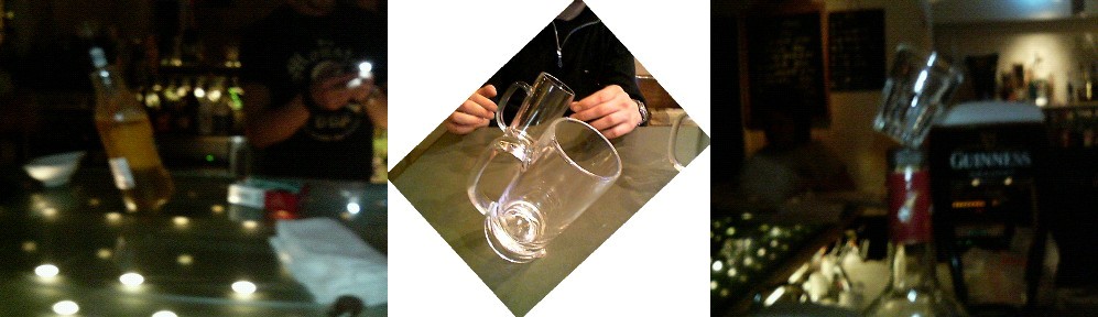 Ein neues Hobby: Glaeser auf einem 100 Yen-Stueck auf die Kante stellen